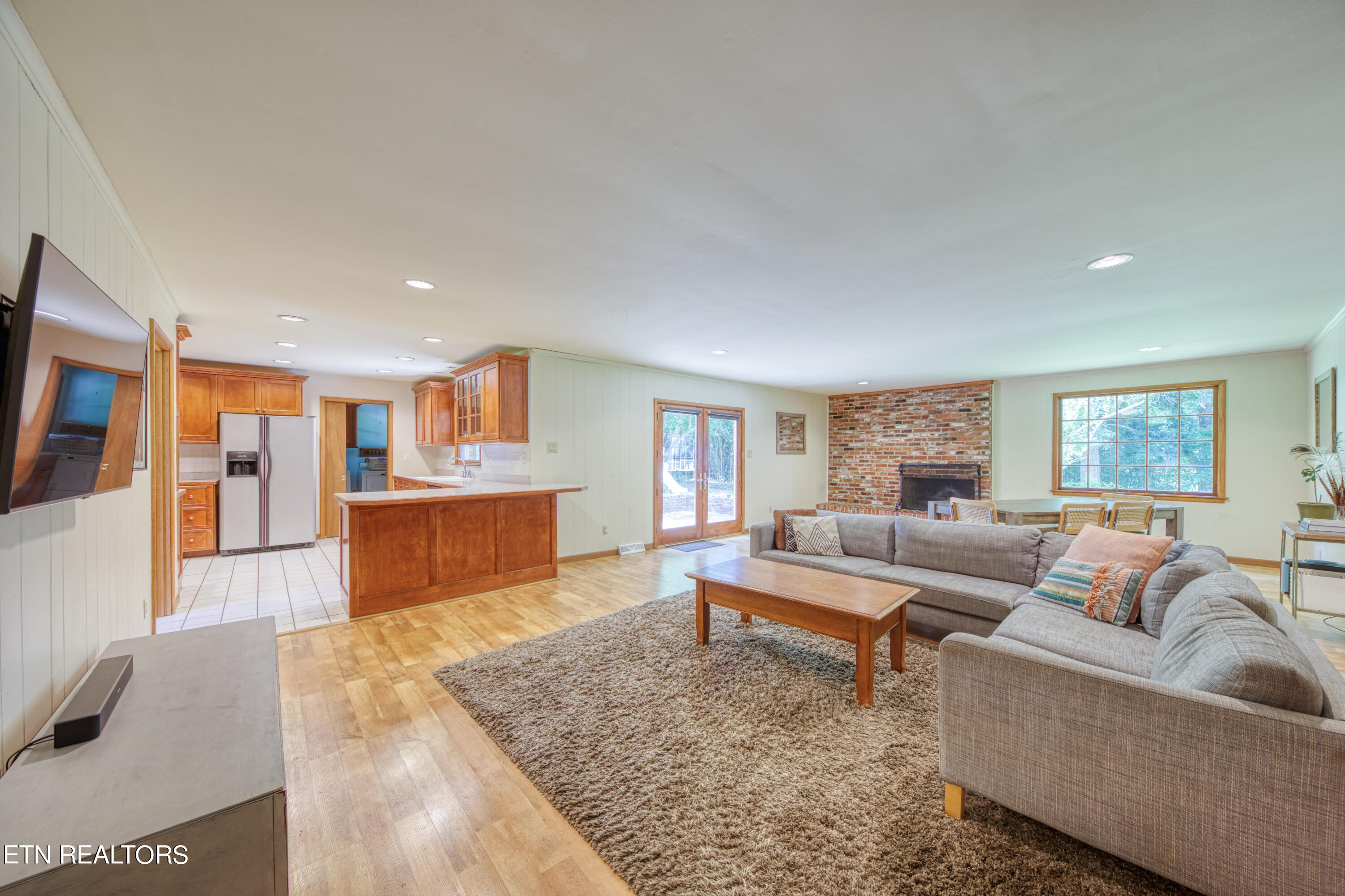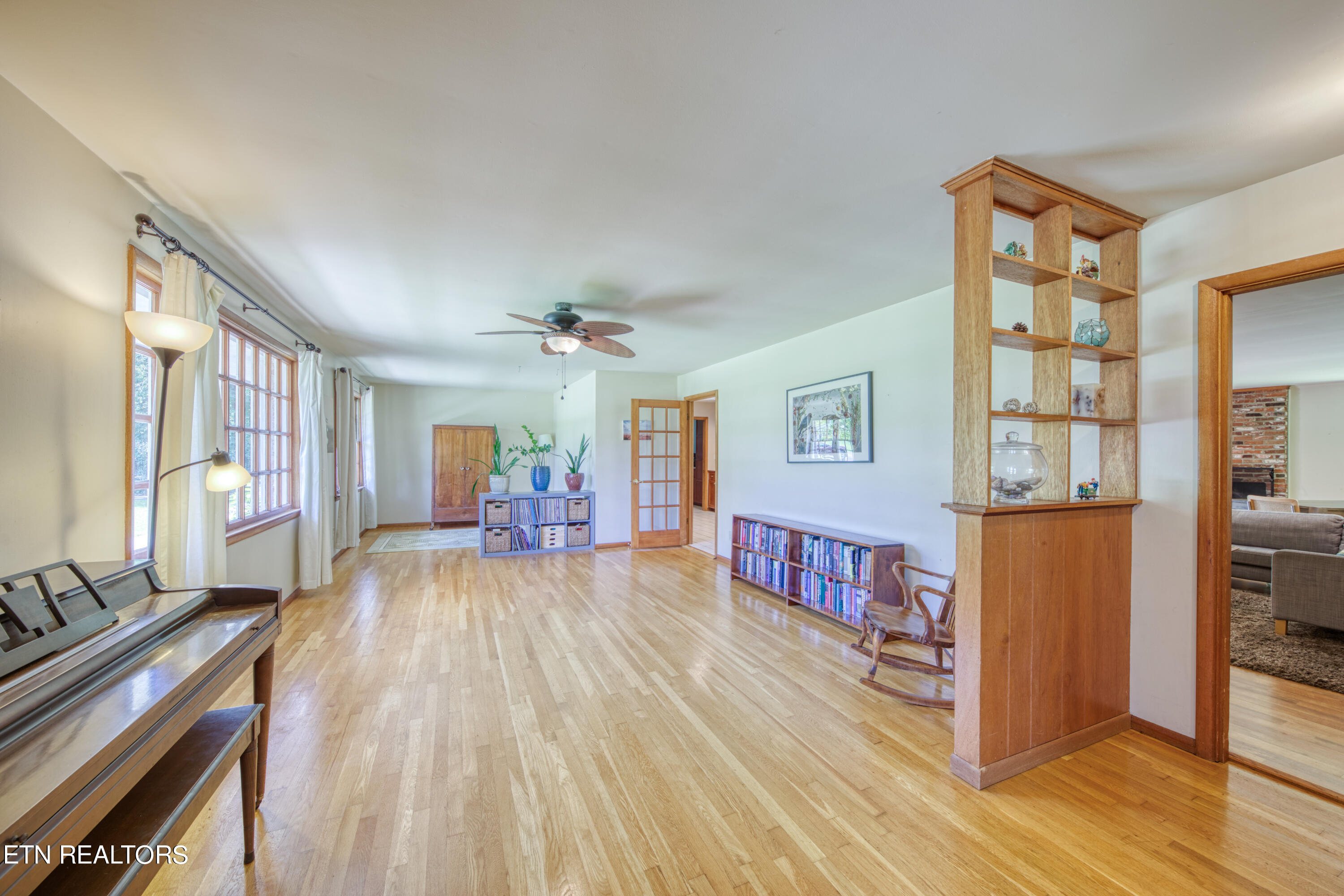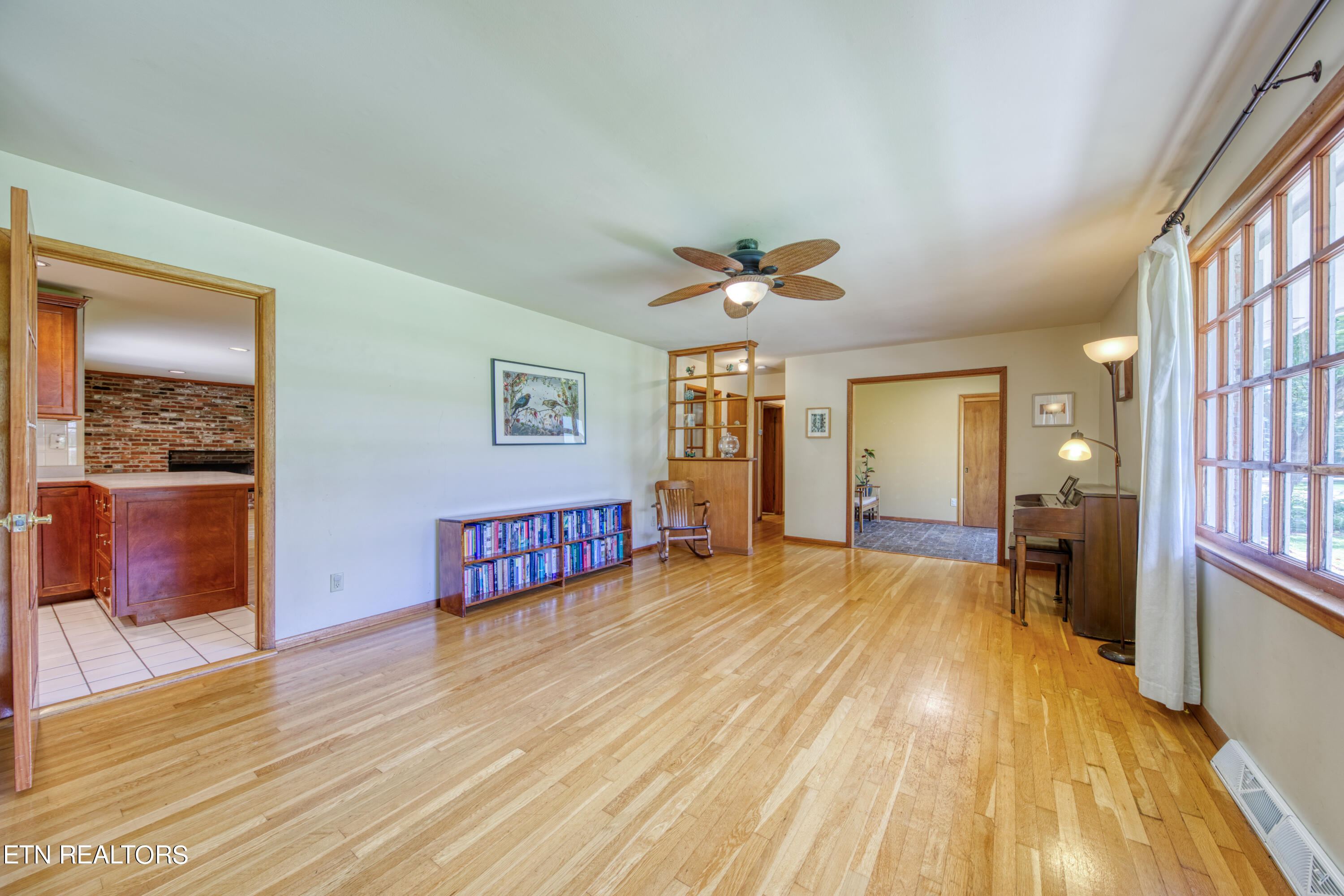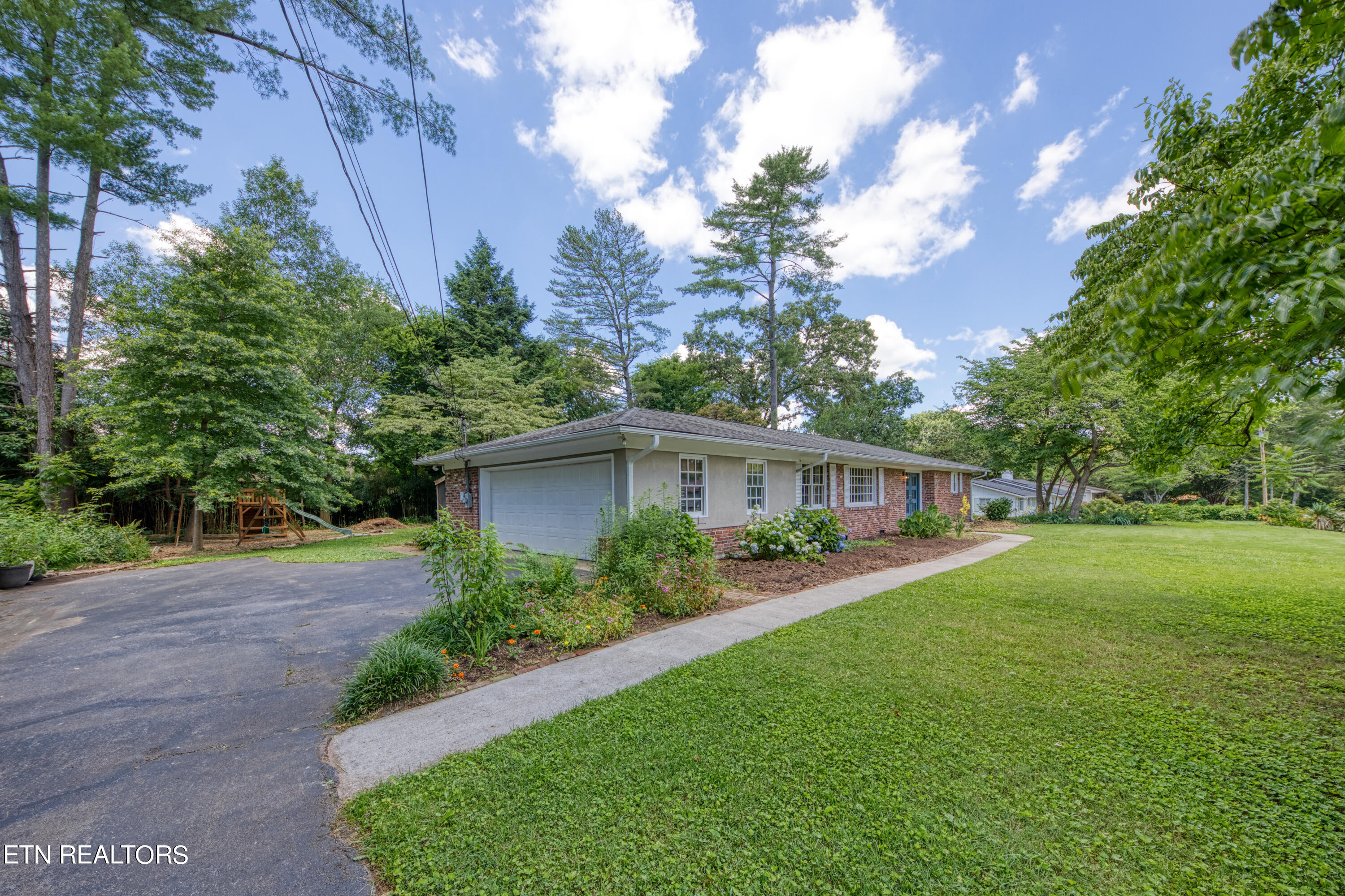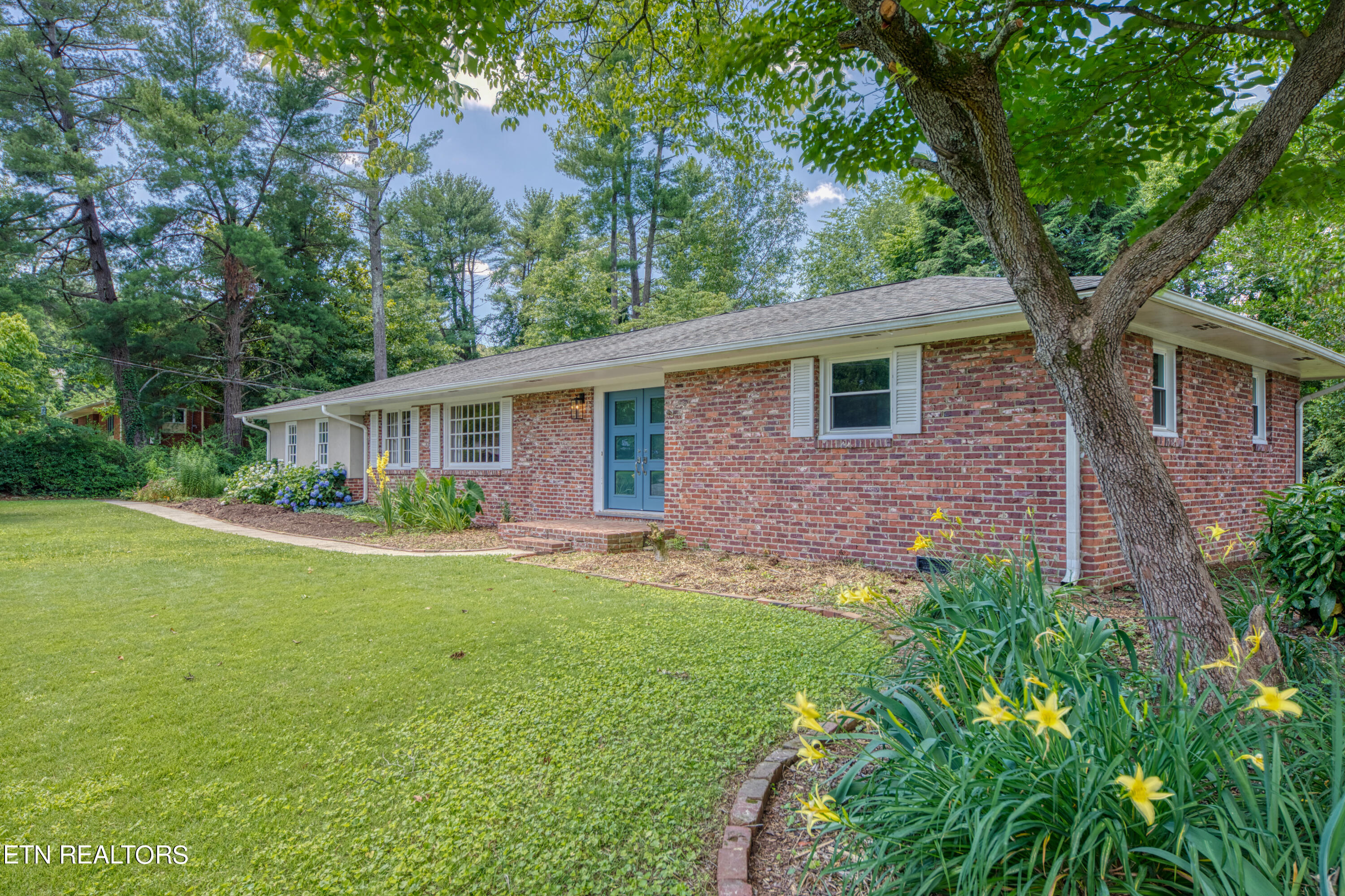 Fabulous mId-century rancher on just over half an acre in the highly desirable Lakemoor Hills Neighborhood. Enter through the recently upgraded front doors to find a well-maintained property with paver flooring in the foyer and hardwood floors throughout the rest of the home. Relax in your large living room featuring built-in shelving and a bonus space that is perfect for a home office. Entertain your friends and family by the woodburning brick fireplace in the oversized open concept great room complete with kitchen, dining, and family room spaces. Retreat for a restful nights sleep in one of your three nice-sized bedrooms including a large primary with an updated ensuite bathroom and a walk-in closet. Enjoy summer evenings on your patio overlooking a flat backyard with a play area, chicken coop, and storage shed. The large 2 car garage completes the home and makes for a truly serene lifestyle. This is a rare property in one of Knoxville's finest neighborhoods that is close to the University of Tennessee, Downtown Knoxville, and McGhee Tyson Airport. Book your showing today!
